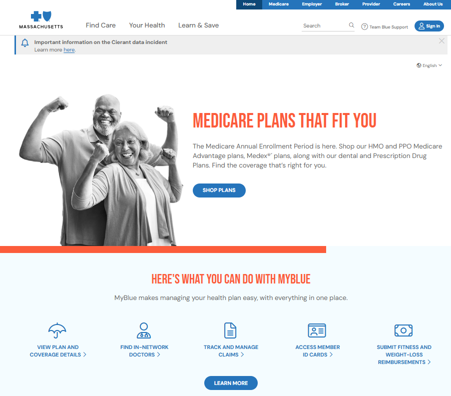 1. Go to bluecrossma.org and click the 'Sign In' button.