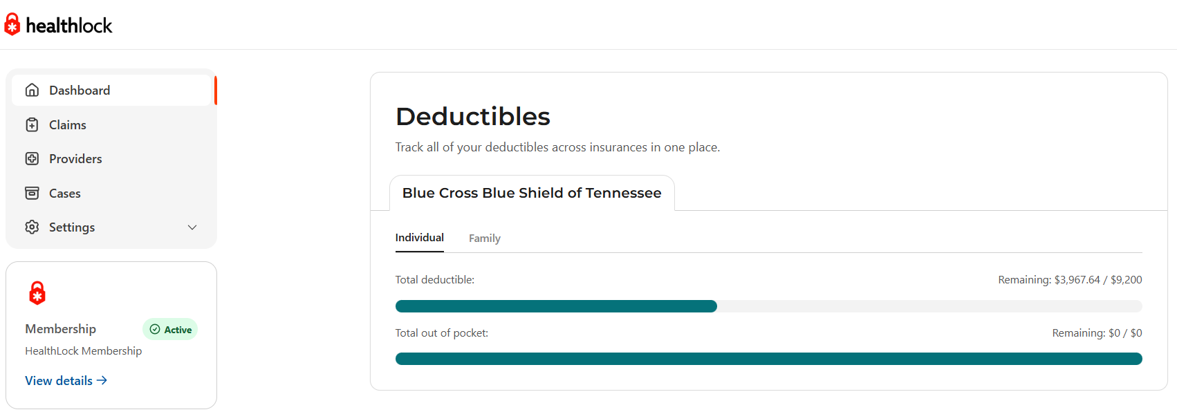 - Review your deductible progress using the tabs for both Individual and Family to stay informed about your healthcare spending.